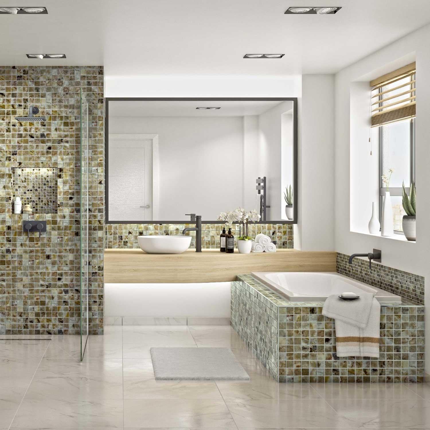 Premium natural stone mosaic sheets designed for bathrooms, wet rooms and feature walls. Mesh-backed for easy fitting, flexible layouts and a timeless stone finish.